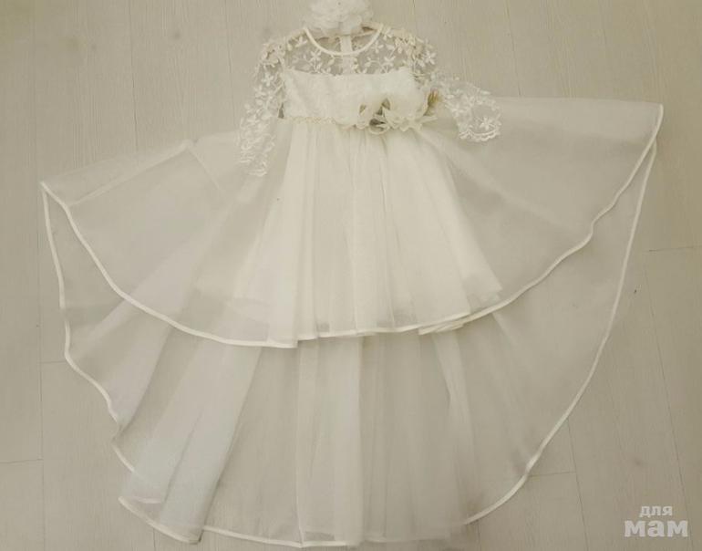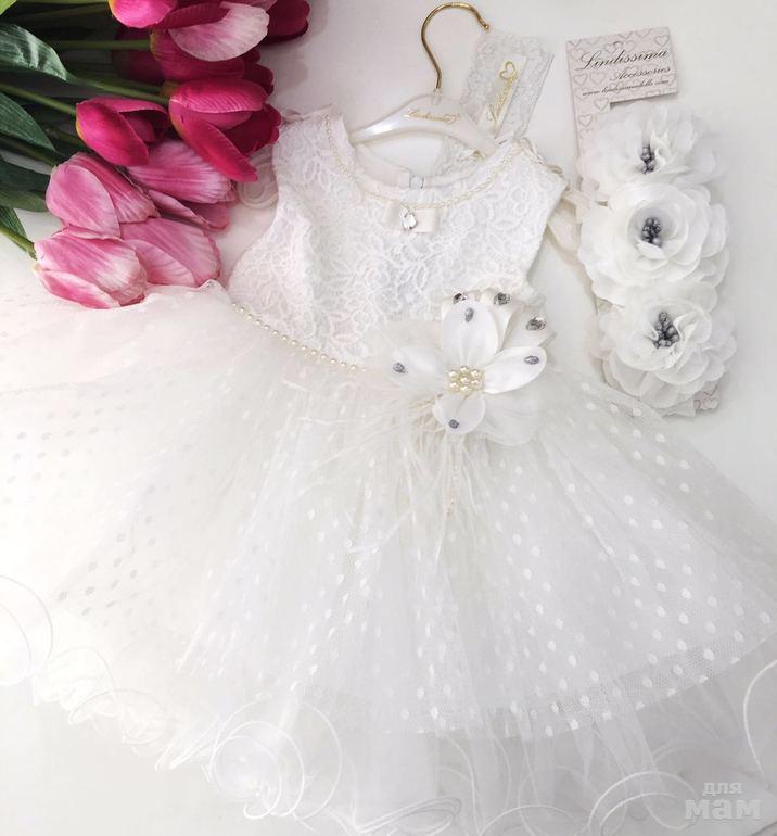 30)арт 1710(кор 2)Великолепное белоснежное платье для малышки! В комплекте ободок.
