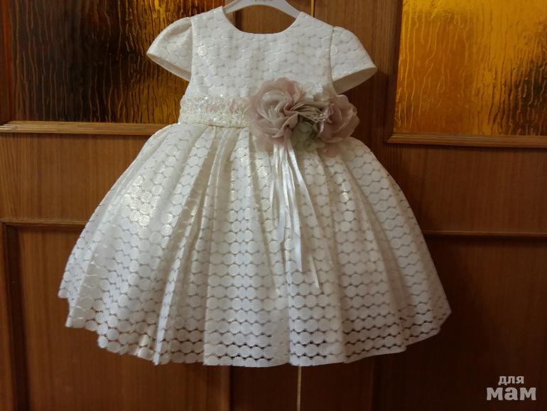 28) арт 1707(кор 2) Очень красивое платье для малышки. В комплекте ободок. На ткани золотистый блеск.