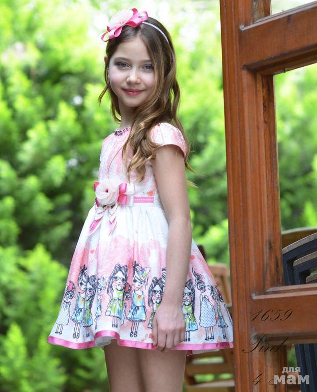 49) арт 1614(кор 11) . Очень красивое платье! Очень пышная юбочка, красивущая набивная ткань верха! Брошь на поясе отстегивается. В таком платье ваша дочка будет самой неотразимой! Идеальный вариант на любой праздник!