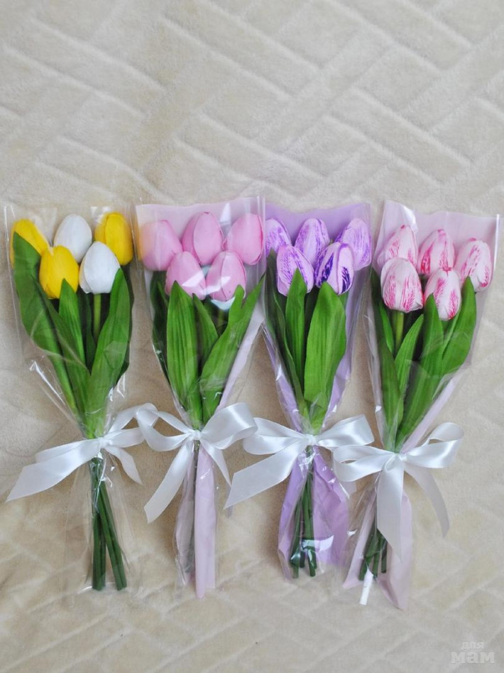 Букетов 4 вида. Бутоны на искусственном стебле, можно поставить в вазу.