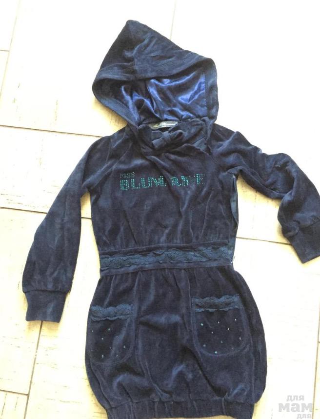Туника-платье Блюмарин . Темно синяя . На капюшоне подкладка атлас. Ткань микровельает тонкий . Состояние прекрасное. Выручала нас и в прохладный летний вечер . 900₽ Маркировка 4 но реально с 3-3,5-5 , просто напуск на рукаве и внизу меняться будет.