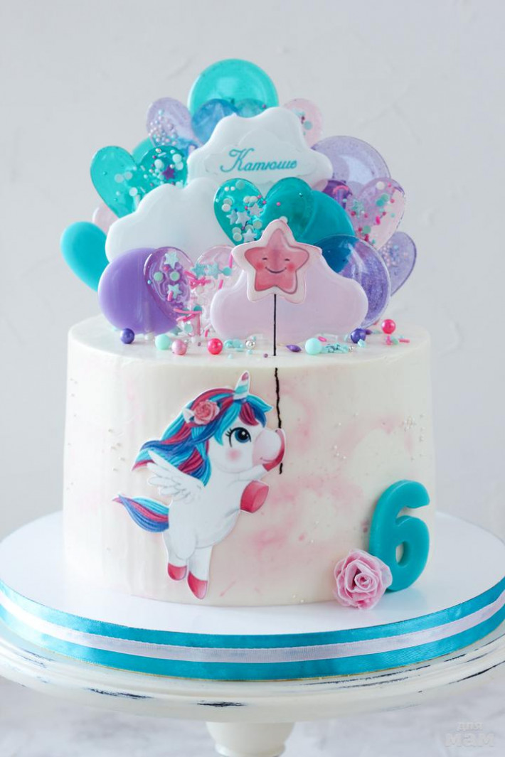 Внутри «малиновый пломбир». Покрытие-крем-чиз. Декор леденцы и сахарная картинка.