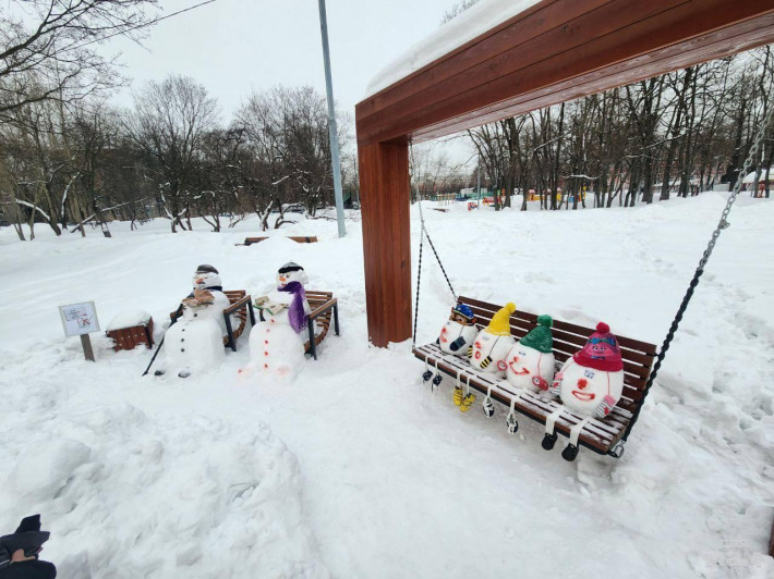 ⛄️Мама и папа-снеговики вывели своих малышей на прогулку в Тимирязевском парке в Москве.