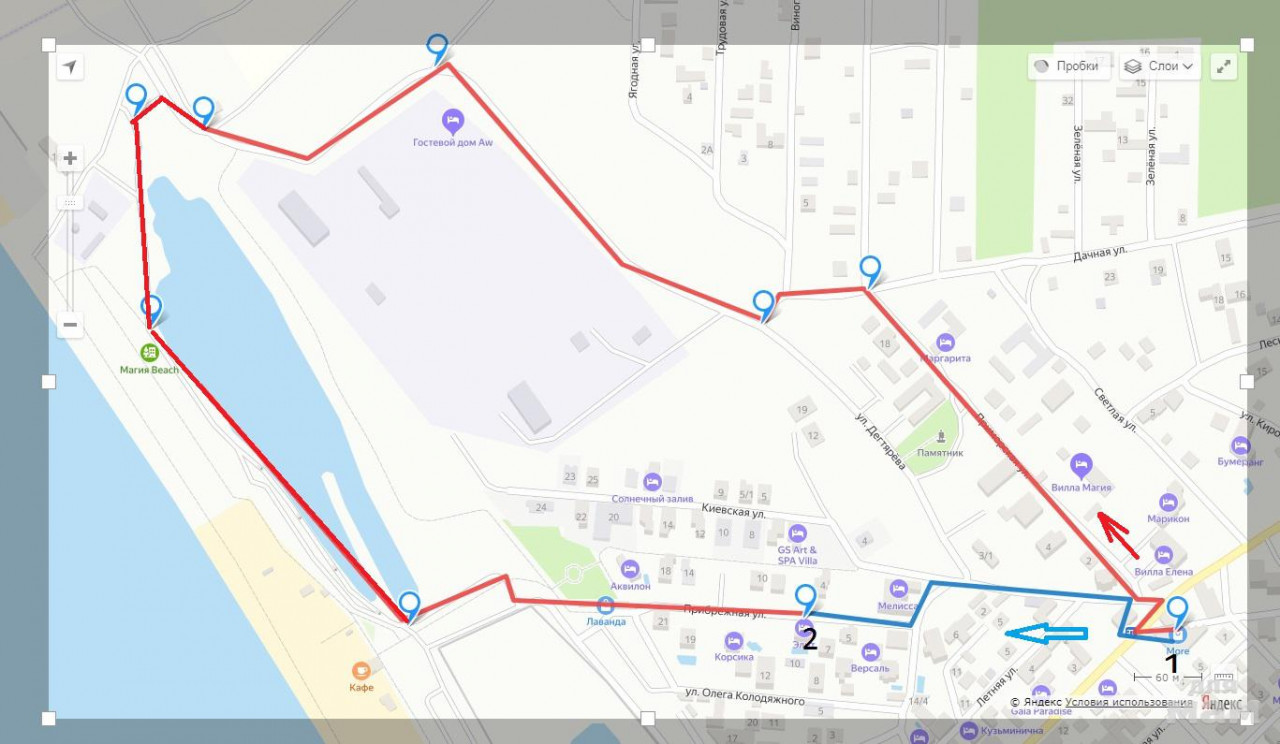 Синим выделен правильный путь, красным - это то, как я увела семью. от цифры 1 к 2. Впечатляет?