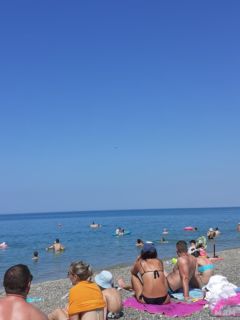 Вода была градуса 24. Заход в воду пологий и приятный, ни тебе острых ракушек, ни водорослей, ни скользких камней. Море не глубокое. У буйков глубина около трех метров (муж нырял-проверял). Пляж достаточно чистый. Народу не много, тишина, умиротворение. А над морем, демонстрируя фигуры высшего пилотажа, летают истребители.