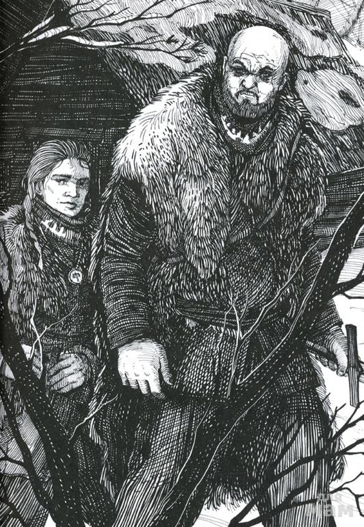 В чаще леса великан с белым волчьим оскалом на шарфе развернул коня и направил его прямо к Ильве и Катгрин.