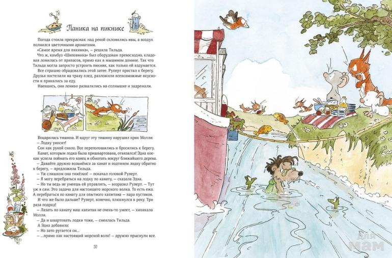 Весной Тильда всегда мечтает о приключениях, и они находят ее сами. Старый капитан Боб, родственник Тильды, решил отправиться на покой, а за его лодкой обещала заботиться Тильда. И вместе с Рупертом, белкой Эдной и бельчатами, Улитиком и серой мышкой Молли она отправляется на старой лодке "Шиповник" в речное путешествие. Путешествие проходит не очень гладко. Лодка едва не садится на мель, бельчата убегают в лес, путь преграждает бобровая плотина, однако каждое такое происшествие команда "Шиповника" считает чудесным приключением. И даже проливной дождь не испортит настроение - ведь это прекрасная возможность провести на лодке генеральную уборку. А заодно и найти таинственную карту с указанием на спрятанное сокровище. Как же его найти? Проще простого! Ведь на карте изображена река, по которой они плывут, а сокровище - это их дом, деревушка среди холмов.