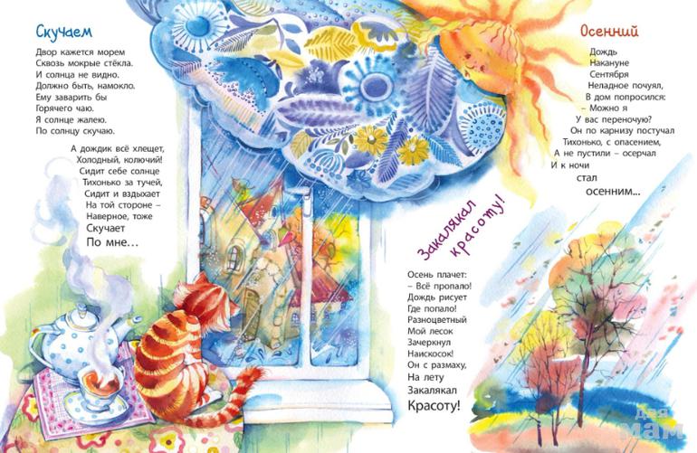 Чудесные дождики живут в сборнике стихов Натальи Карповой с очаровательными иллюстрациями Елены Дроботовой.