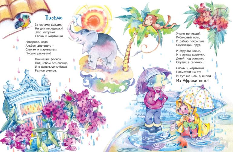 Чудесные дождики живут в сборнике стихов Натальи Карповой с очаровательными иллюстрациями Елены Дроботовой.