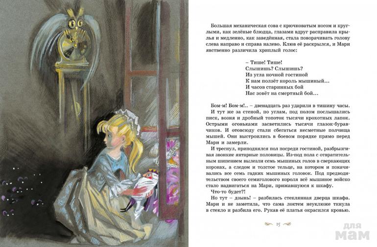 Эту рождественскую сказку иллюстрировали многие художники. Ника Георгиевна Гольц, признанный классик книжной иллюстрации, заслуженный художник России, обладатель Почётного диплома Международной премии по детской литературе имени Х.К. Андерсена, увидела героев Гофмана по-своему, очень индивидуально и талантливо. Её рисунки – воздушные, лёгкие, даже волшебные – помогают читателям погрузиться в мир Гофмана и почувствовать необычность его сказки.