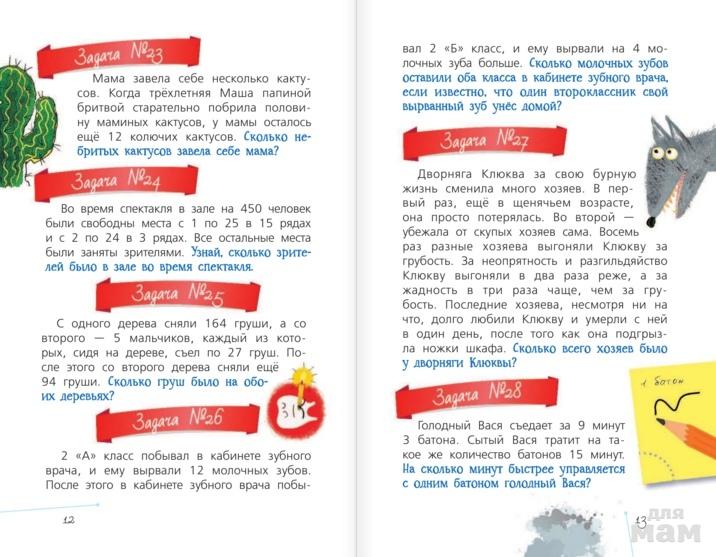 "...задачи тут самые настоящие. Для второго и третьего и четвёртого классов. Все они имеют решения и помогают закрепить, пройденный в соответствующем классе материал".