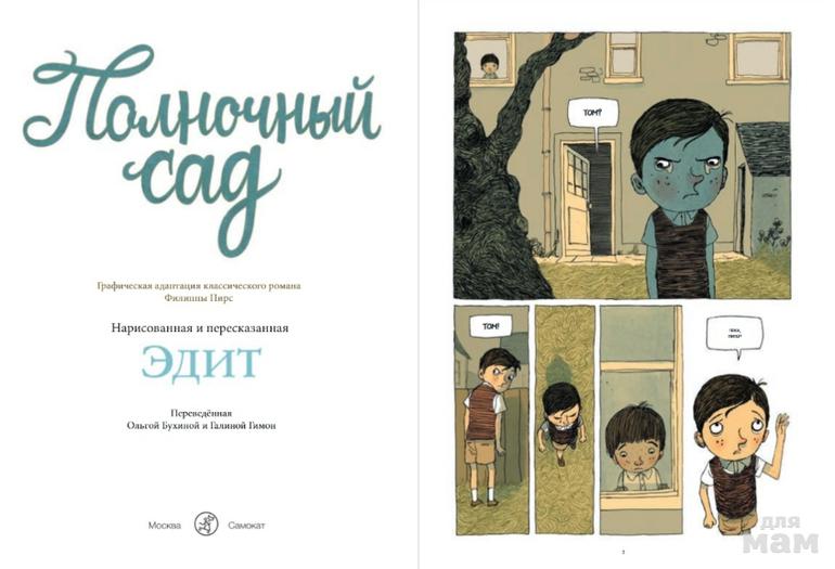 Графическая адаптация классики английской детской литературы, романа Филиппы Пирс «Том и полночный сад»(1958), выполненная французской художницей Эдит (Эдит Граттери). Его главные герои—мальчик Том и Время.