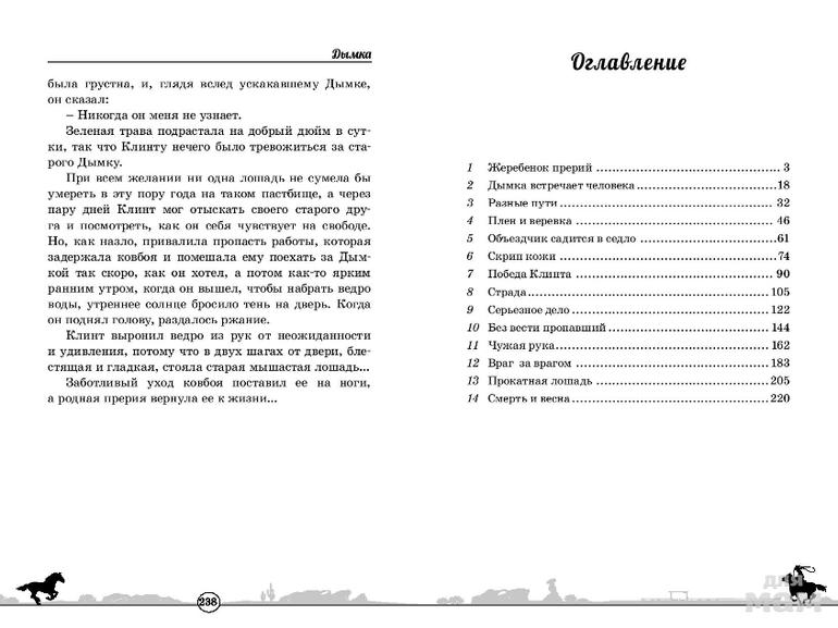 В книге рассказывается история великолепного ковбойского коня Дымки. Автор повести, Джемс Виль, действительно был ковбоем. И все, что написано в ней о лошадях, о жизни в прериях, о сложной и опасной работе ковбоев, – все это чистая правда из первых рук. Джемс Виль знал и любил лошадей и свое дело. «Дымка» – самая знаменитая его повесть, хотя всего им было написано более двадцати книг. Впервые она была опубликована в 1926 году, а в 1927 получила медаль Джона Ньюбери (ежегодная премия, присуждаемая за выдающийся вклад в американскую детскую литературу).