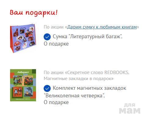 = При заказе от 1000 рублей в подарок литературные закладки по одному любому из промокодов: