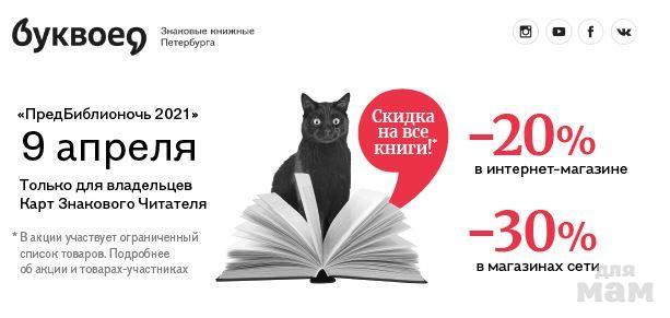 БИБЛИОНОЧЬ в Буквоеде - в Интернет-магазине акция со скидкой 20% проводится 16.04.2021 г. с 00:00 по 23:59 (мск).