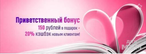 =Приветственный бонус новичкам: 150 р. в подарок + 20% кэшбэк