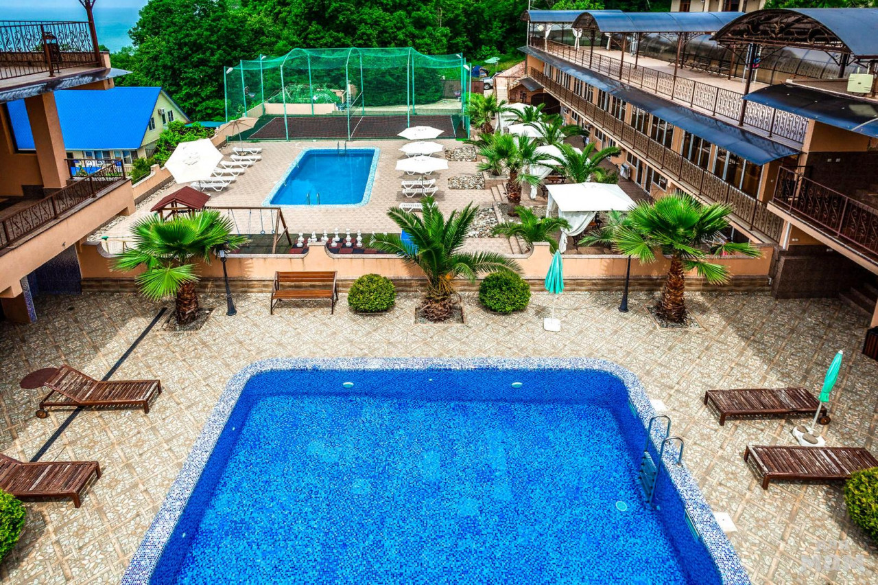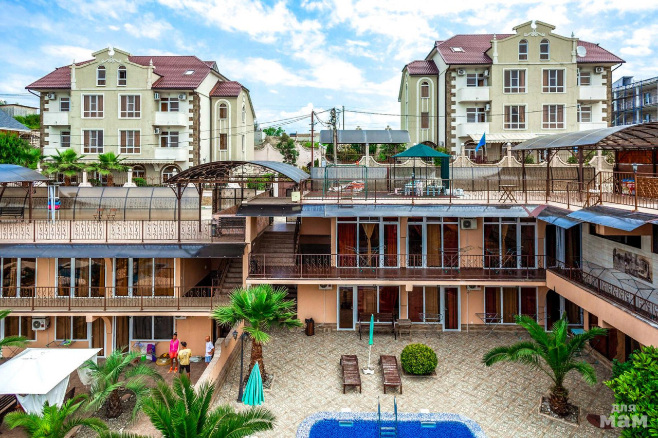 от Черноморском побережья вдали от городской суеты. Здесь очень тихо, красиво, из отеля со всех сторон видно море, это место все называют русским Бали -