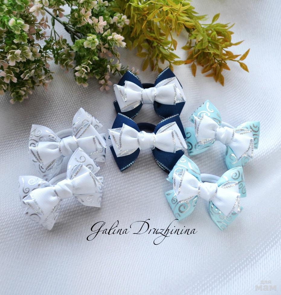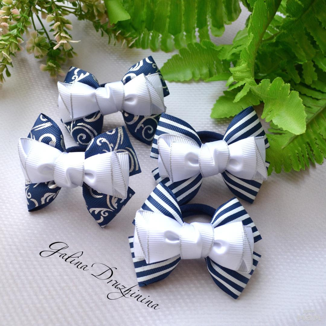 небольшие и аккуратные бантики синие с белым в наличии