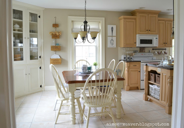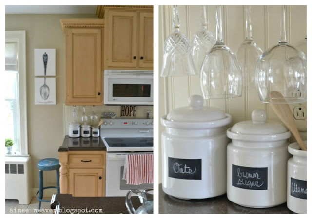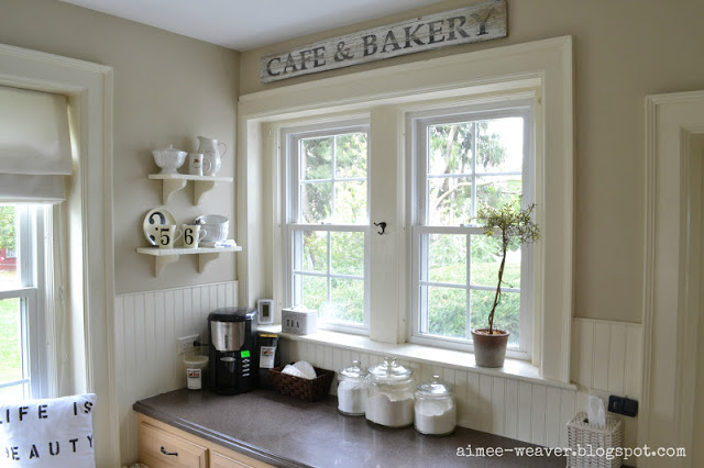 Когда мы впервые приехали в наш дом, мы полностью отремонтирована кухня. Мой муж сделал почти всю работу сам, в том числе столешницы, напольная плитка, гипсокартон ... Вы называете это, он может это сделать! Я счастливица! Я создал обложку ложку и кафе Вывеска над окном.