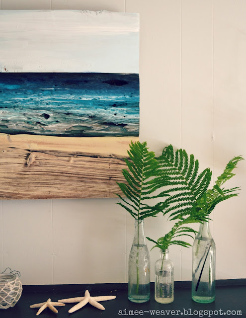 Я создал океан стиле картина над камином использованием старого дерева сарай. Это, вероятно, моя любимая вещь в гостиной прямо сейчас. Я создаю знаки и картины с использованием старых дерева, и я их продаю в моем магазине .