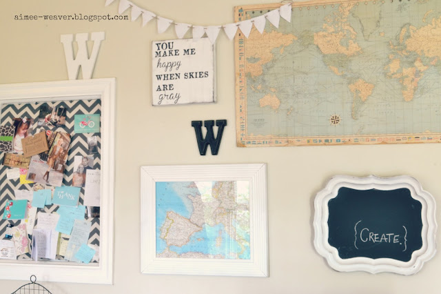 Я использовал случайные вещи, чтобы украсить это место - старую карту расположены вдоль стороны дороги в мусорном баке, старый синий Мейсон банки, старые кадры, антикварный вентилятор. Все затраты очень мало или были свободны.