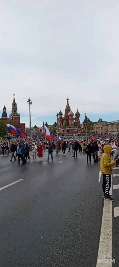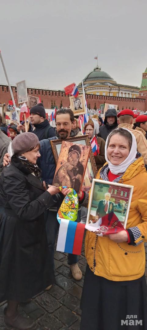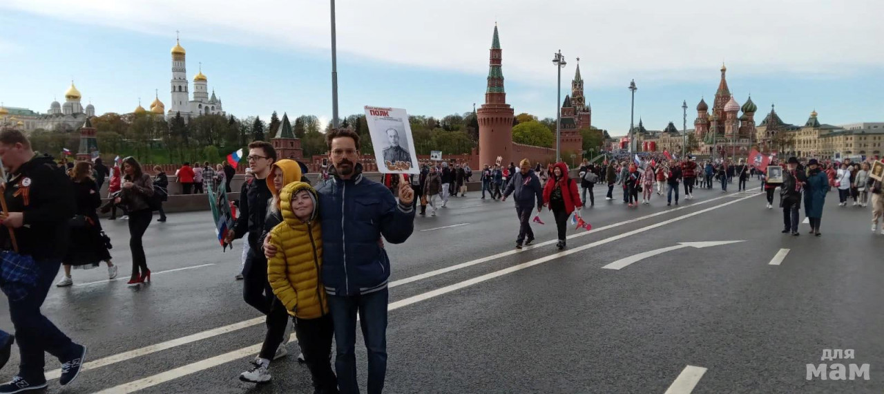 Раскаты криков Ура, волной перекатываясь то спереди, то сзади, пасхальное Христос Воскресе! Ведь Победа была 6 мая на Пасху, в день святого Великомученика Георгия. Так мы и шли, не чувствуя ни усталости и не обращая внимания ни на дождь, ни на пронизывающий ветер. Дети Донбасса несли портреты погибших бойцов ДНР. Как я узнал, среди этих детей есть и те, у которых не только деды, но и отцы не вернулись с поля боя. "День Победы порохом пропах, этот праздник, со слезами на глазах", запевали дети, пели и мы , и дальше разливалась эта песня. В конце шествия выглянуло солнышко, решив обогреть озябших шествующих. Отрадно, что дети прониклись этим, получили заряд патриотизма и энергии. После того, как все разошлись, и пошли к метро через мост , мы встретились с колоритным персонажем из прошлого. Как-будто он пришёл с поля боя … Сфотографировались с ним и счастливые пошли по домам, делясь своими незабываемыми впечатлениями с близкими, и с вами, дорогие друзья. Сижу я в кафе и пишу эту заметку, а мой сын спрашивает меня: «Папа, а мы пойдём в следующий раз? И, если пойдём, давай мы оденемся как тот солдат в каске …»