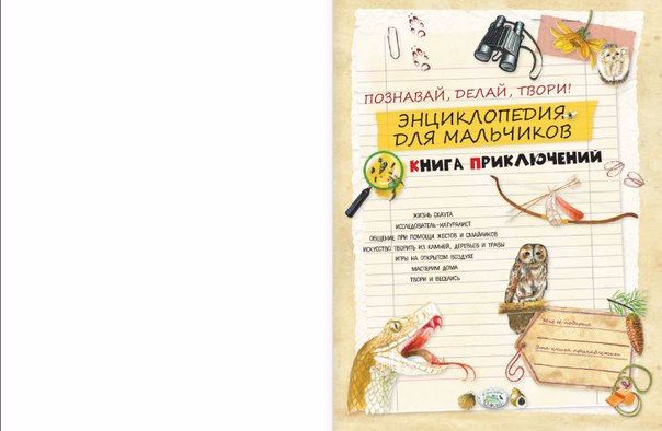 Куда бы ты ни отправился, "Энциклопедия для мальчиков. Книга приключений" всегда пригодится. Если ты скучаешь на даче, открой эту книгу, и время пролетит незаметно - не только весело, но и с пользой! Пригласил в гости друзей и не знаешь, чем их занять, - эта книга предложит тебе весёлые игры и развлечения, так что время пролетит незаметно. Любишь природу, животных и звёздное небо - загляни в книгу, и сможешь узнать много нового и интересного! Листая яркие страницы с увлекательным текстом, ты найдёшь для себя замечательные идеи и занятия на все случаи жизни.