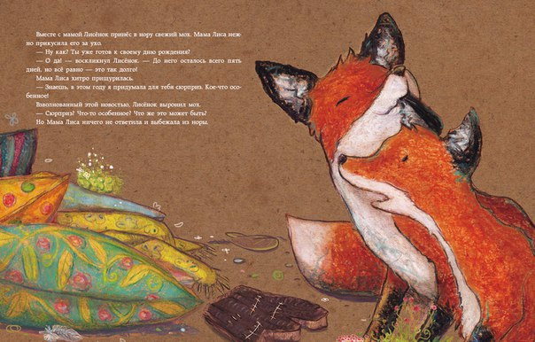 На этот раз Мама Лиса придумала для сына что-то необычное. Малышу так любопытно, что он не может удержаться и вместе со своими друзьями гадает, что же это будет. Звери делают самые невероятные предположения! Прочитав эту книгу, юные читатели узнают, какой всё-таки подарок получит Лисёнок.