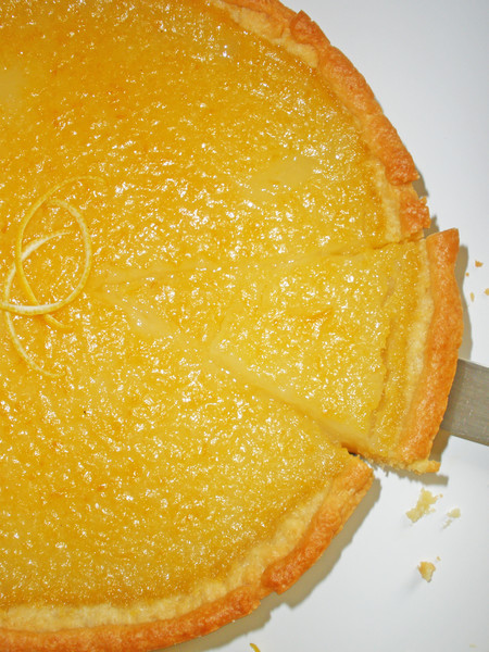 Вливаю яично-лимонную смесь и ставлю в заранее разогретую до 180 С духовку на 40 минут. Но готовность пирога проверяю так - слегка качну форму с пирогом, если начинка хорошо загустела и только слегка колыхается - готово.