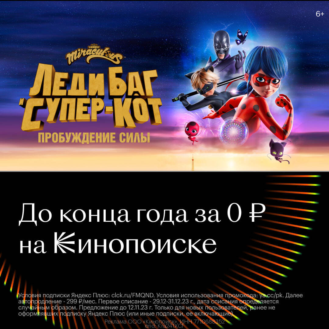 Кинопоиск предлагает вам уникальный мир развлечений, начиная с кино и заканчивая музыкой и баллами. С промокодом LLS4HQFY вы можете наслаждаться бесплатным доступом до конца года и продолжить пользоваться сервисом за 299 рублей в месяц. Погрузитесь в мир кино и музыки с Кинопоиском и Яндекс Плюс!
