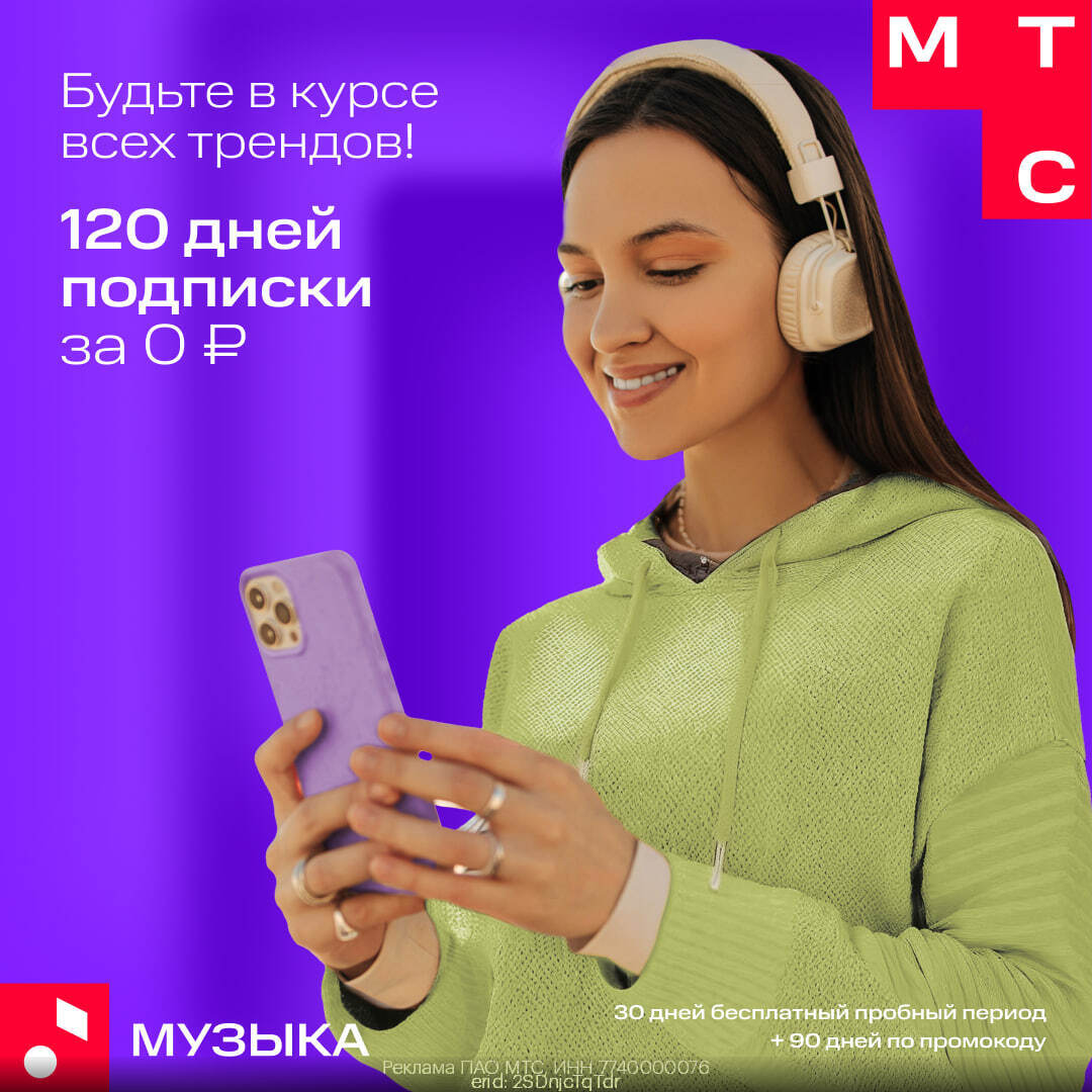 Все очень просто! Переходите в мобильное приложение МТС Музыка и оформляйте подписку по промокоду GBNS218. Этот код предоставит вам 120 дней бесплатного доступа к музыке, если вы новый пользователь.