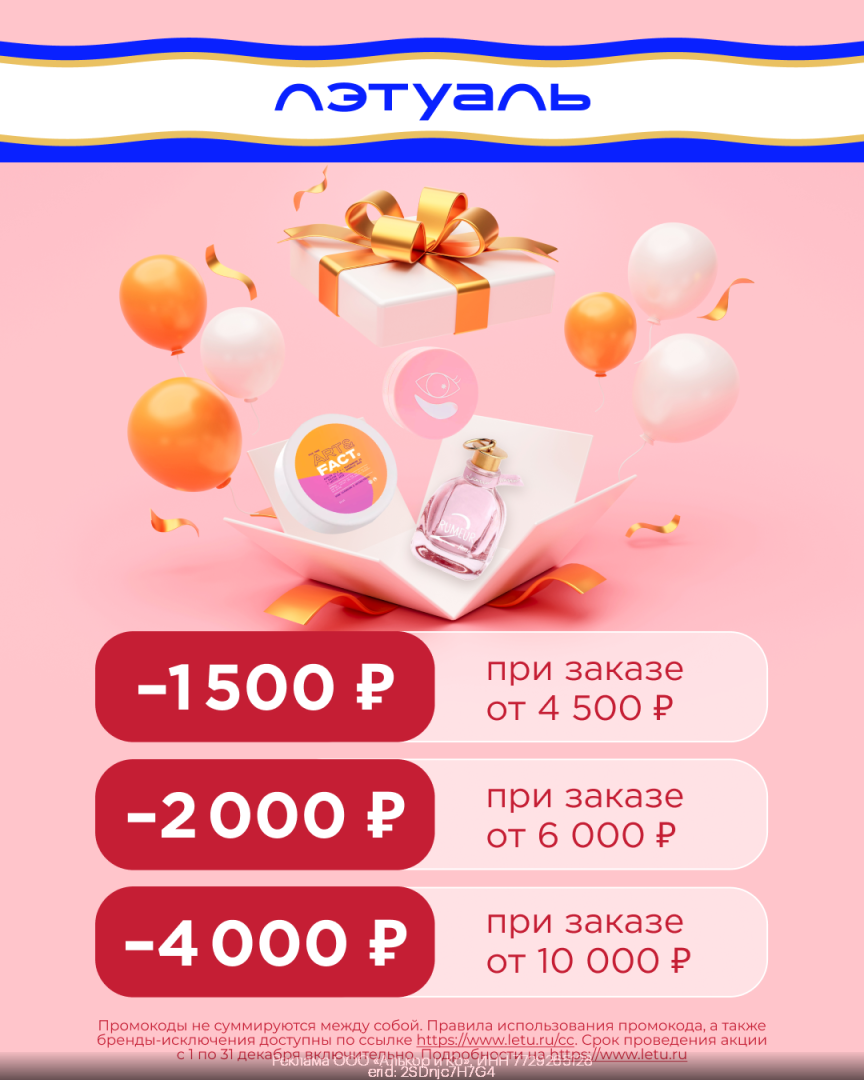 ЛЭТУАЛЬ всегда идет навстречу своим клиентам, предлагая не только широкий ассортимент продукции высшего качества, но и щедрые скидки для новых и постоянных покупателей. Используйте промокоды в мобильном приложении и позвольте себе немного больше роскоши!