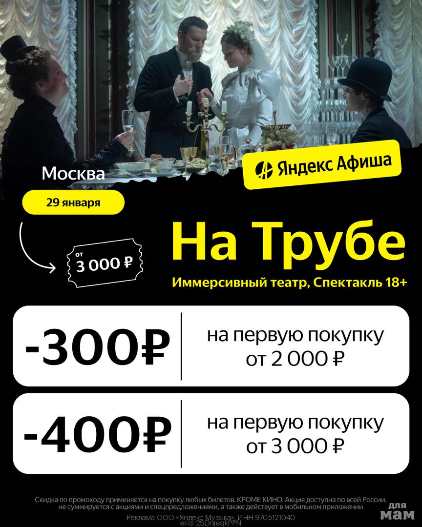 Культурное обогащение не должно стать испытанием для вашего кошелька. Сохраните эту статью в закладках, пользуйтесь промокодами Яндекс Афиши, и пусть каждое мероприятие приносит вам не только эстетическое удовольствие, но и финансовую выгоду. Реклама. ООО "Яндекс Музыка". ИНН: 9705121040