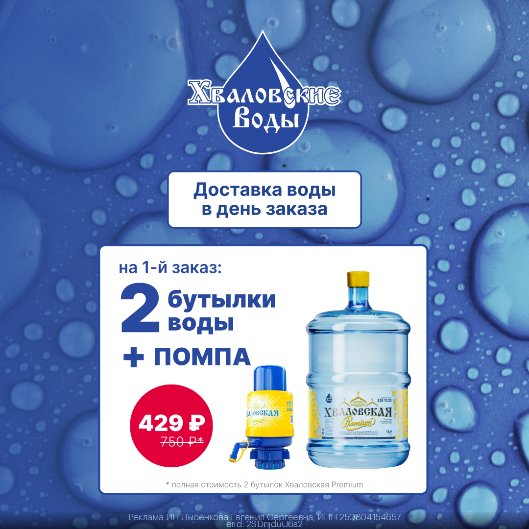 Вас приветствует мир чистой воды и удивительных скидок! При первом знакомстве с нашей водой предлагаем вам промокод 5FC8KLI, который облегчит ваш старт на 10%. Получите стартовый пакет – две бутылки плюс помпа – за 429 рублей, вместо обычных 449 рублей.