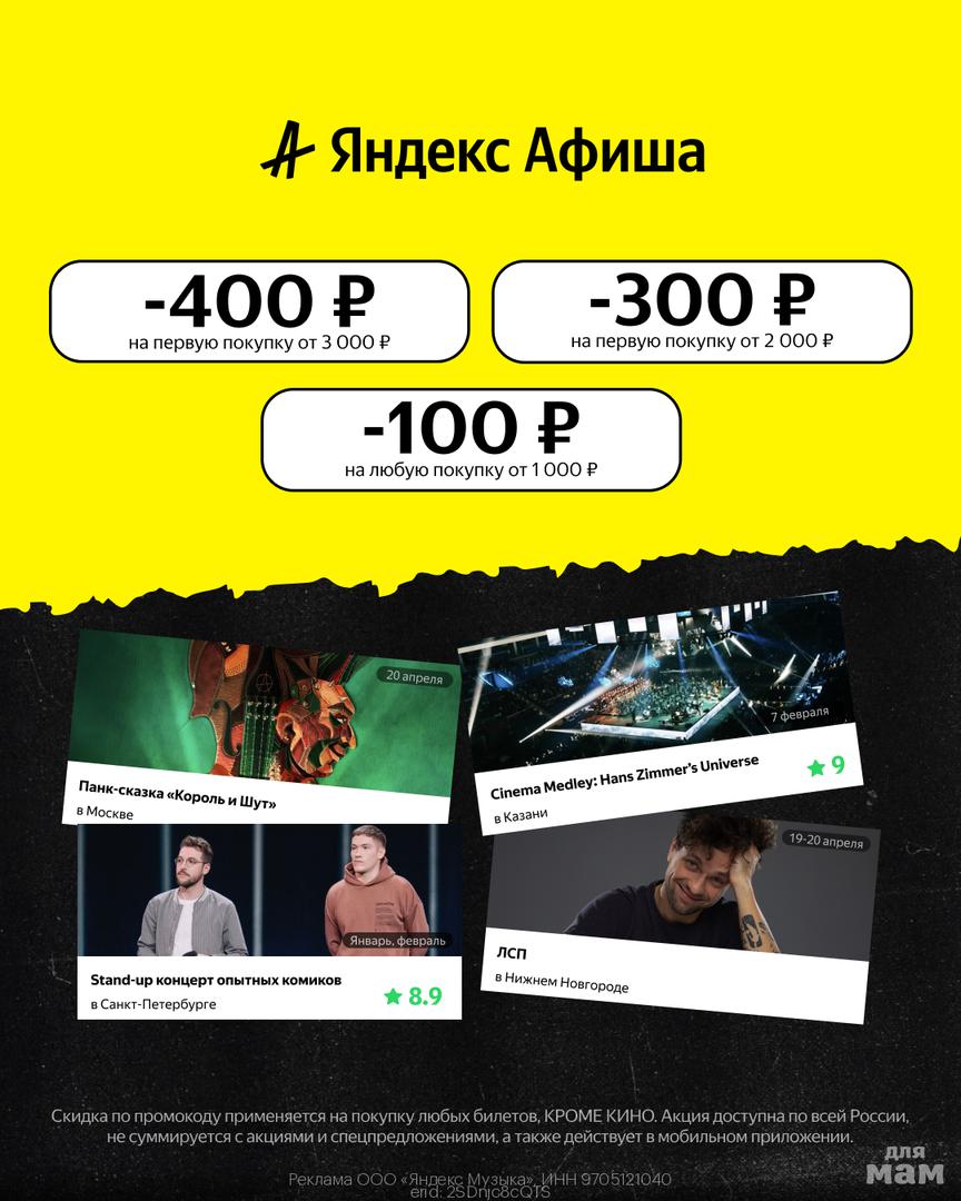 Эксклюзивные скидки доступны как новым, так и постоянным пользователям Яндекс Афиши.