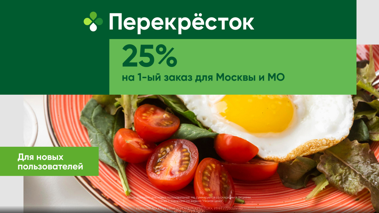 Выгодно начните весну с Перекрёстком, получив 25% скидку на ваш первый заказ. Воспользуйтесь промокодом M6DS83.
