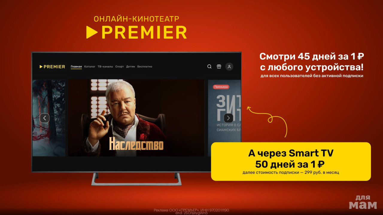 Реклама ООО "Премьер", 16+. ИНН: 9702011190