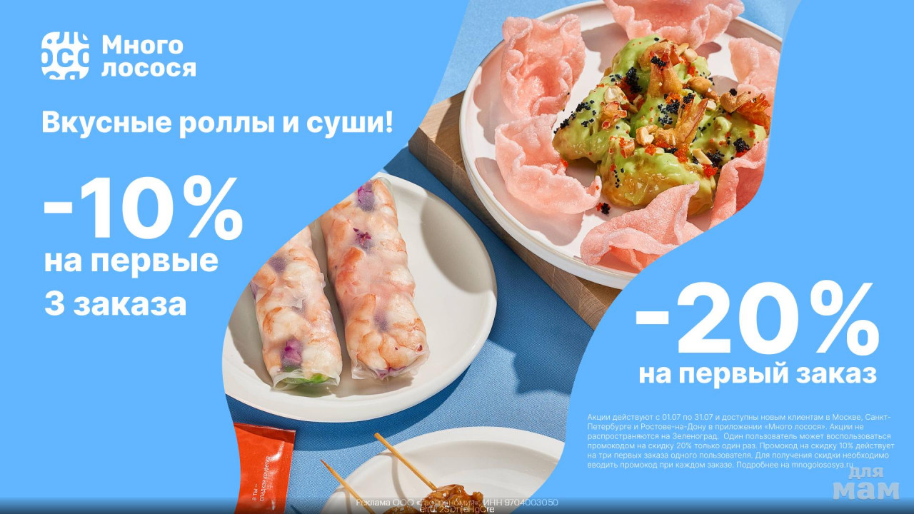 Не упустите шанс побаловать себя вкусными роллами по выгодной цене. Помните, что акция действует только для новых клиентов, так что если вы еще не пробовали роллы от "Много лосося", сейчас самое время это сделать!