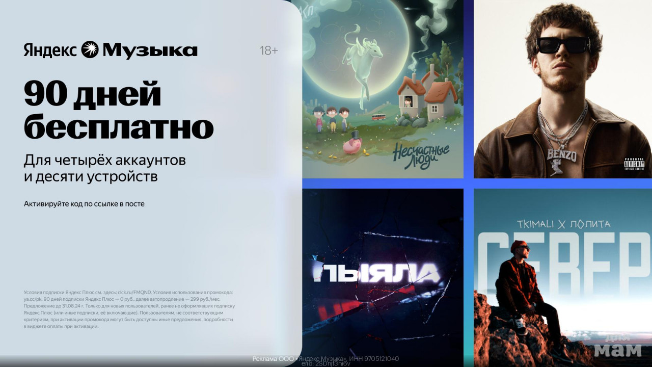 Ссылка на АкциюПереходите по ссылке gtblg.ru/PowaM9?erid=2SDnjeXuSnn и активируйте промокод, чтобы получить доступ к Яндекс Музыке на 90 дней бесплатно.