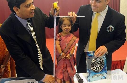 Джоти Амджи с ростом 62 сантиметра считается самой низкой женщиной в мире.