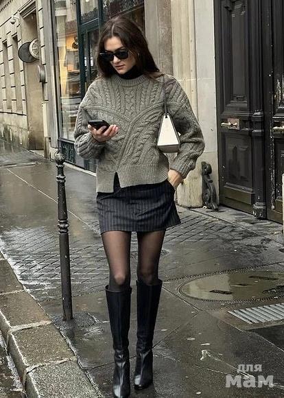 Многие из нас любят мини. Плохо, что наши погодные условия не позволяют ходить с такой длиной круглый год. И даже несмотря на то, что сейчас весна, не стоит торопиться с оголенными ногами — на улице все еще очень прохладно. Поэтому давайте придумывать стильные и практичные комбинации, которые подойдут для прохладных весенних дней 👆