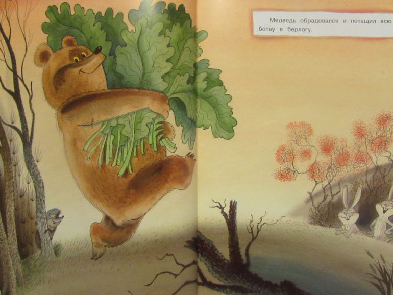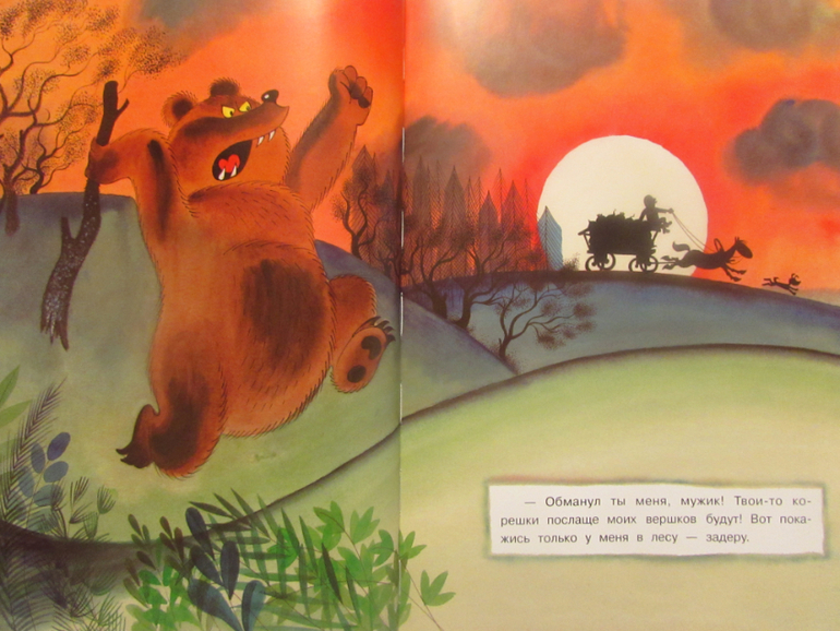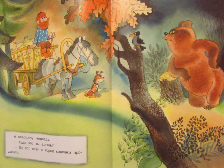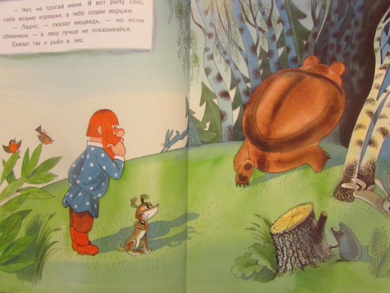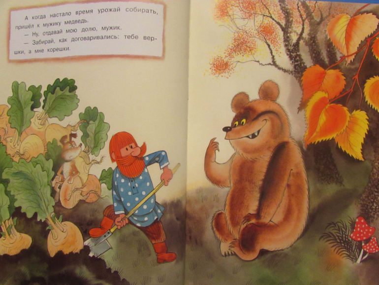 Первая сказка всем известна: про то, как мужик и медведь делили корешки и вершки.