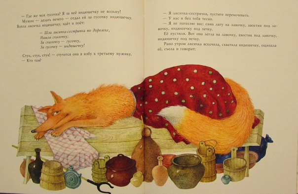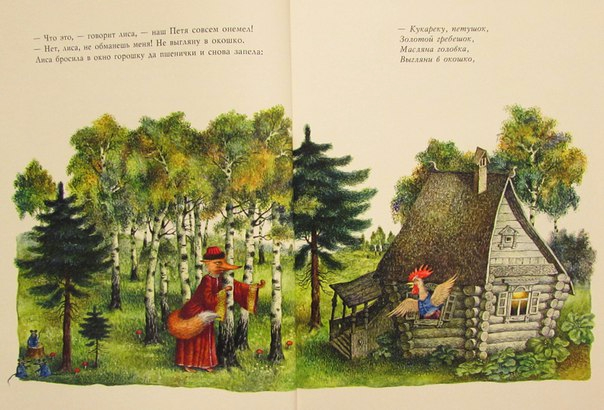 Это я не считаю, развороты с названиями сказок, на которых расположены два крошечных рисуночка. Таких разворотов в книге всего шесть. На всю книгу.