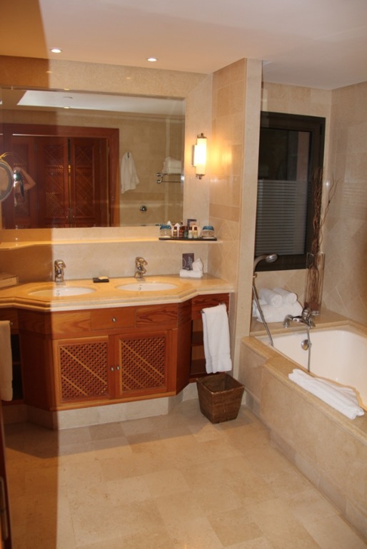 В номере мини-бар, холодильник, кофеварка с набором для приготовления кофе, 2 ТВ, и муз.проигрыватель. Для детей уже стояли кровати – старшей в гостиной, а малышке – в нашей спальне. Кроватка на колесиках, поэтому мы ее потом возили по всему номеру) Правда мягких бортиков на кроватке нет, поэтому сооружали их из полотенец, которых в номере очень много.