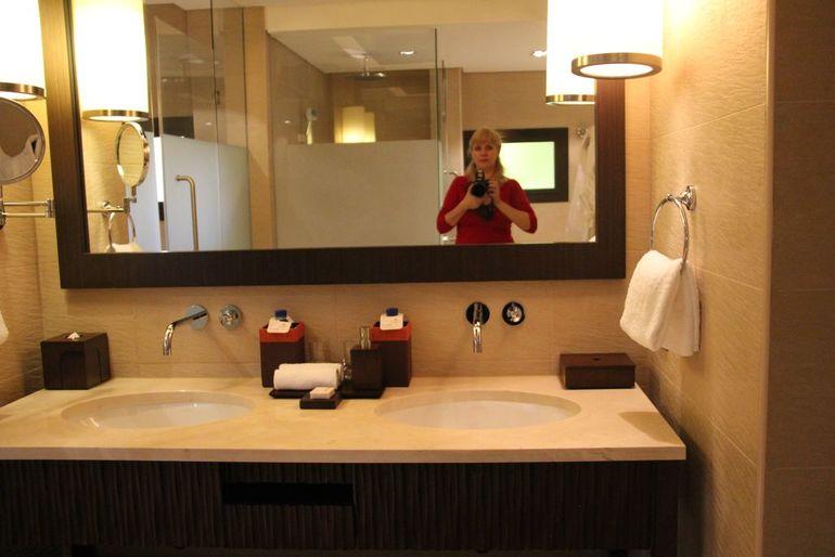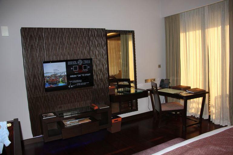 Мы бронировали Deluxe Lagoon View. Заселили в номер № 1922. Он расположен на втором этаже коттеджа, с видом на бассейн. Номера на первых этажа – с прямым спуском в бассейн. Но я не любитель купаться в бассейне, предпочитаю море, поэтому мы не стали переплачивать за выход к бассейну. Да и при желании можно было спустится со второго этажа и искупаться) Вход в номер – электронные ключи. Сам номер довольно просторный. Подсветка не яркая, приглушенная. В комнате огромная кровать, около окон небольшой будуар с мягким диванчиком и подушками, стол со стулом, большое зеркало, ЖК-телевизор. В коридоре расположен небольшой холодильник, кофемашина, вода, чайник, сейф (очень низко, на уровне пола). По пути в ванную комнату – гардеробная. Ванная большая – два умывальника, туалет и биде за отдельным непрозрачным стеклом, ванна. Душ с обычной и тропической лейкой тоже за стеклом. В ванной весы, махровые халаты, много полотенец, 2 бутылки с водой и стаканы. Шампунь, кондиционер, гель для душа, лосьон для тела находятся в больших бутылях, декорированных деревом, а не как обычно в отелях в мини-форматах. Вода очень мягкая, мыло мылится хорошо) Но напор воды не очень сильный, ванная набирается долго) Из основной комнаты выход на террасу, где расположены лежаки и столик. Кровать нереально мягкая, сверху матраса лежит толстая перина, и когда ложишься – прямо утопаешь в ней) Подушек у каждого по две, одна мягче, другая поплотней набита, никакого постороннего запаха не было. Спать очень удобно!) Для малыша в комнате уже стояла хорошая деревянная кроватка.