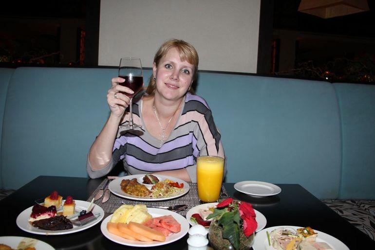 На ужин – на центральном столе 12 поддонов с разными горячими блюдами, плюс еще повара что-то жарят всегда. Салаты, закуски, много овощей, нарезанные фрукты. Отдельный стол с роллами и суши. Есть устрицы, небольшие крабы (мы не любители этого), два раза за неделю были креветки. Нереальные десерты! Здесь я ела самый вкусный чизкейк в своей жизни)) За 7 дней ни разу не ела одно и то же горячее блюда, всегда что-то новое. Напитки за ужином все платные, цены не дешевые, но и сам отель не из дешевых) При желании можно заказать еду в номер, но это только платно. Один раз меняли ужин на обед, т.к. уезжали на экскурсию. На обед – все то же, что и на ужине. Народу в ресторане всегда больше к концу завтрака и к концу ужина, но толкучки никогда нет, столы стоят достаточно просторно. Официантов много, обслуживают довольно быстро. Причем пока несут заказ, обязательно еще 1-2 официанта подойдут и спросят – что Вы хотите.)) В конце ужина, если заказывал напитки, приносят счет на подпись. Есть русскоязычный официант Дамир.