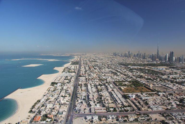 На следующий день был полет на вертолете над Дубаем (220$ с чел. за 15 мин.). За нами в отель приехала машина и отвезла нас на вертолетную площадку у отеля «Атлантис». Мы с мужем должны были лететь в разных группах, чтобы кто-то из нас в это время был с сыном. Первой полетела я)) Вертолет 5-ти местный.