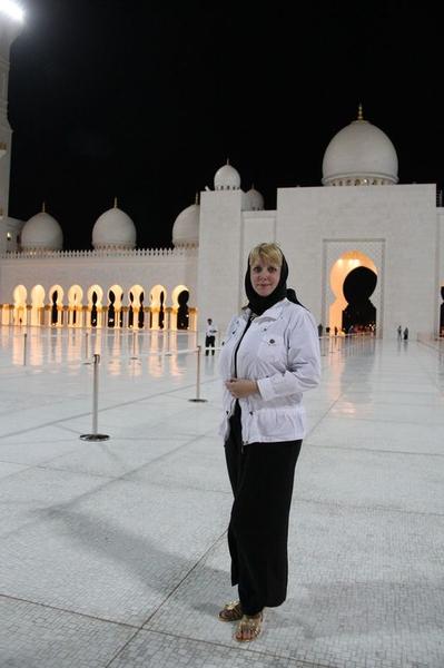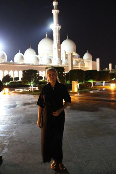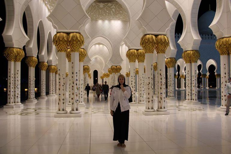 По пути в мечеть еще в автобусе женщинам раздали абаи (черные длинные платья) и платки, т.к. на входе в Мечеть очень строгий контроль. В итоге получилось так, что именно мне достался абай с рукавом до локтя) На входе охрана остановила всю группу, указав на меня, что так проходить нельзя. Возвращаться в автобус и переодеваться было долго, поэтому вышли из положения, одев на меня сверху еще легкую куртку с длинным рукавом, любезно предложенной женщиной из нашей группы. Шариат, блин) На входе в мечеть все разуваются, оставляя обувь на полках на входе. Нам дали 40 минут на осмотр мечети внутри и снаружи, дальше мы ходили сами. Этого времени еле-еле хватило, чтобы обойти мечеть внутри, сфотографироваться во внутреннем дворе и дойти до автобуса.