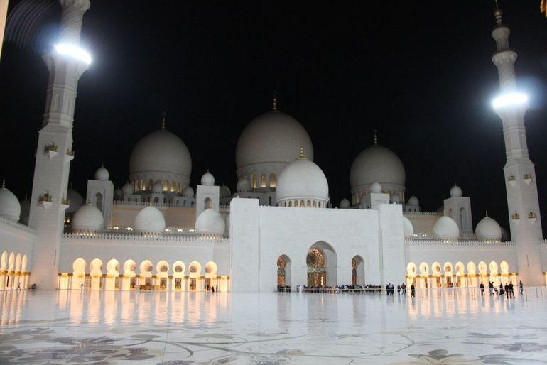 Потом поехали на ужин в один из городских отелей Абу-Даби, по дороге посмотрев центральную набережную. После ужина, когда уже стемнело, поехали в Мечеть Шейха Заеда. И она конечно невероятная! Это то, ради чего мы поехали на эту экскурсию, и ради чего вообще стоит ехать в ОАЭ. Описывать можно очень долго! Все бесподобно красиво! Покажу лучше фото.