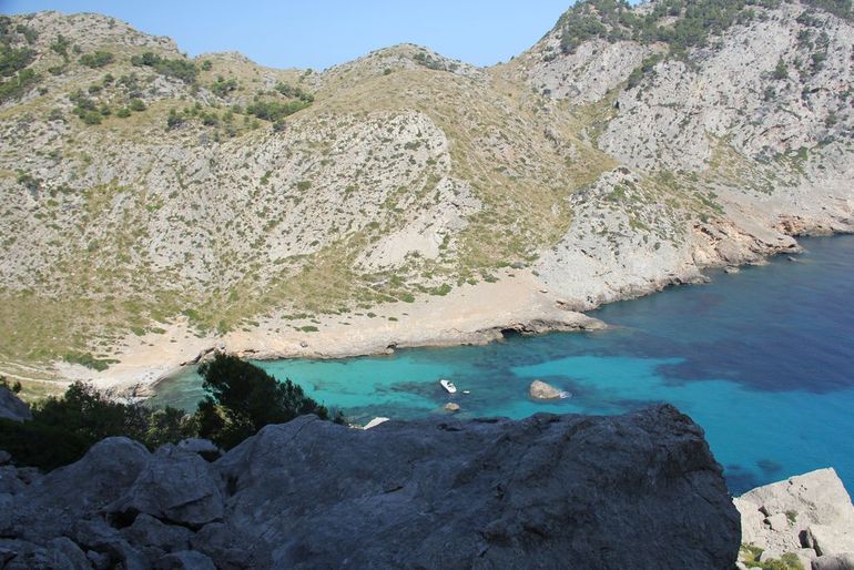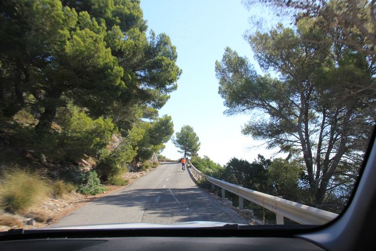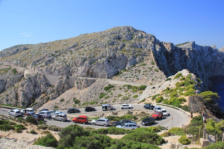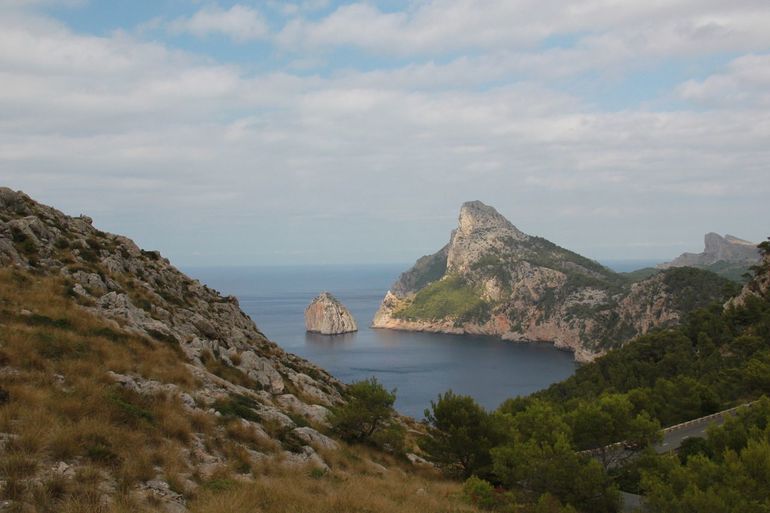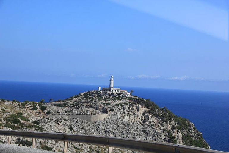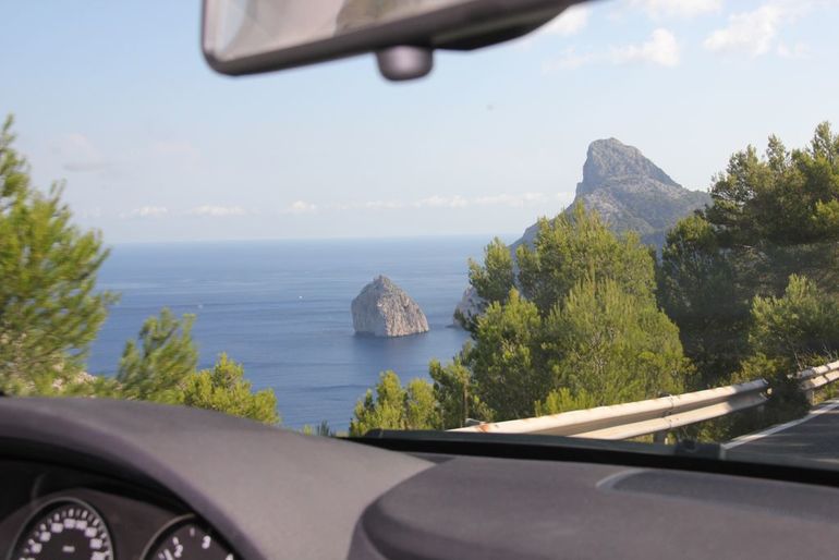 На следующий день нам предстояла дальняя дорога на другой конец острова. Целью был мыс Форментор и маяк на самой оконечности этого мыса. От нас и до конечной цели было около 80 км, которые мы намеревались преодолеть где-то за час) Наивные)) Да, ¾ дороги отличные. Посмотрели проездом городок Порт де Полленса. Понравился его длинный пляж вдоль всей набережной с видом на мыс Форментор. А вот последние 16 км пути - это извилистая узкая горная дорога! Даже для моего мужа, который довольно опытный водитель, эта часть пути была очень напряженной, тем более машина у нас была не мелкая. При встречке приходилось сильно прижиматься к обочине, которой иногда просто нет)) Т.е. кончается асфальт, и дальше обрыв. Довольно захватывающе))
